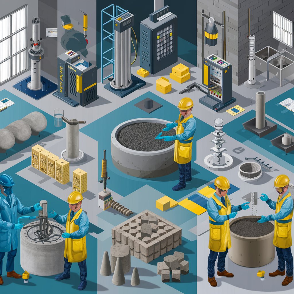 Description: QualityRMC conducts rigorous quality checks at every stage, from raw material selection to final delivery. We test concrete cubes in our in-house laboratory, adhering to BIS standards, to ensure compressive strengths from M10 to M50 meet your specifications.
